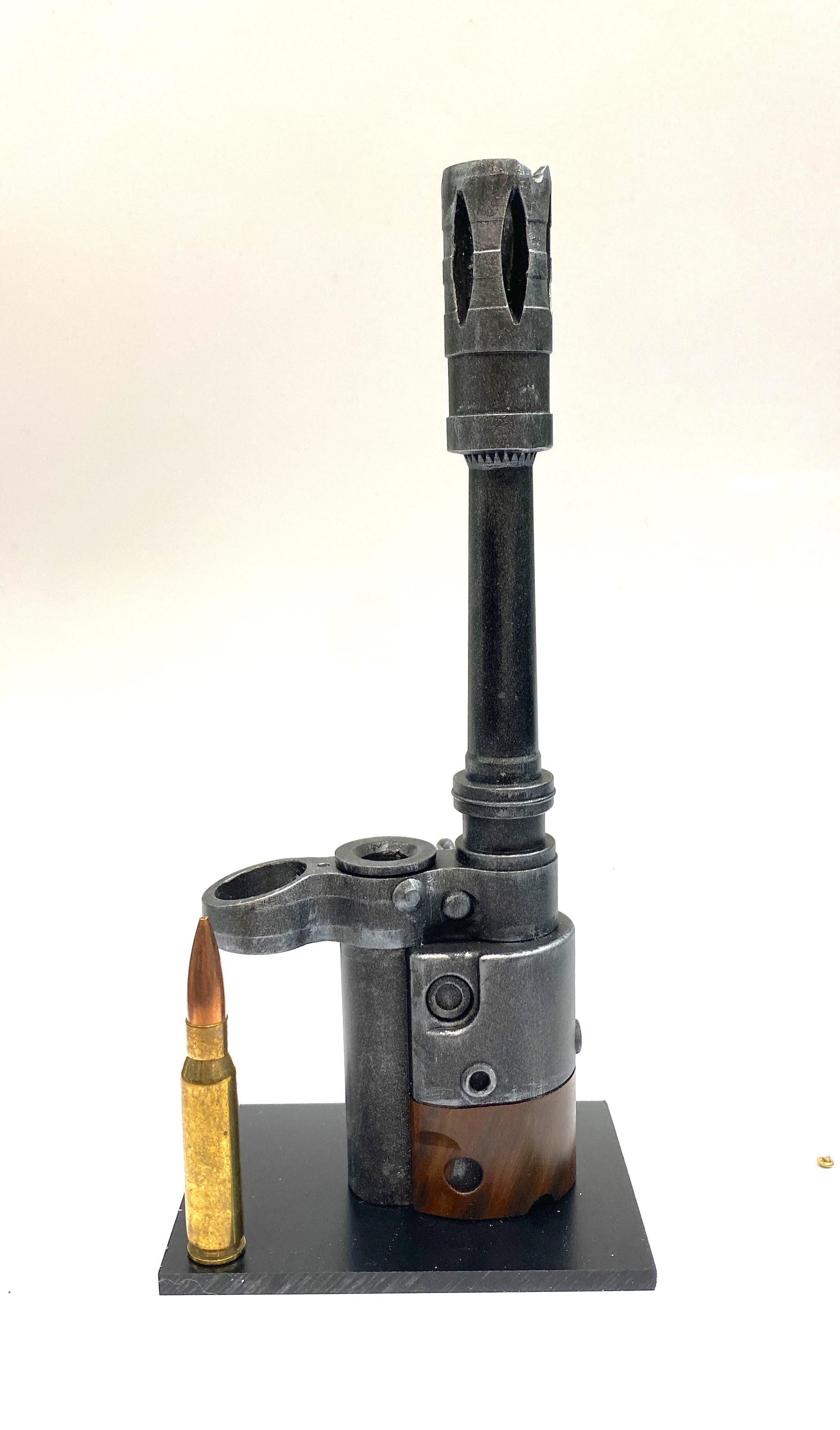 Option 5 : Avec base noire et cartouche calibre 7.62 x 51mm authentique neutralisée